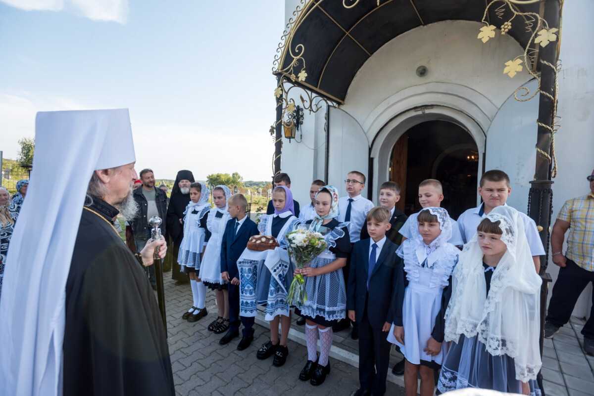 Его Высокопреосвященнство у входа в храм встречали учащиеся школ, казаки, верующие. Воспитанники Ездоченской школы поздравили митрополита Иоанна с днем рождения. В свою очередь, архипастырь пожелал ребятам помощи Божией в новом учебном году. В благословение на учебу Владыка вручил школьникам иконы Божией Матери. Также митрополит поздравил казаков с днем памяти иконы Божией Матери «Донской» — покровительницы казачества.