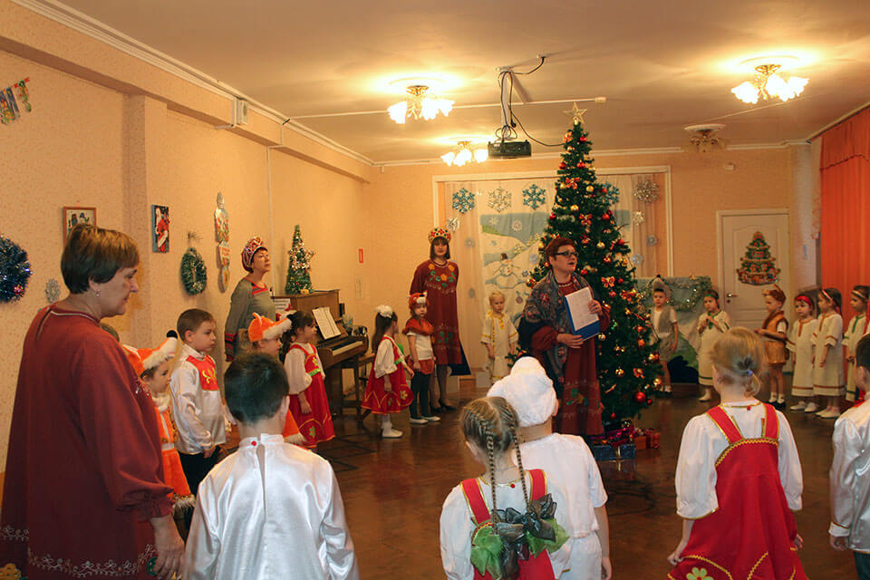 Ребята побывали в гостях у тётушки Матрёны в старинной русской избе, где повстречали ряженных. У рождественской ёлочки девчонки и мальчишки с радостью приняли участие в играх и забавах «Золотые ворота», «Идёт коза рогатая», «Рождественская метёлка», «Как на Васильев день кашу варили», «Святочные гадания».