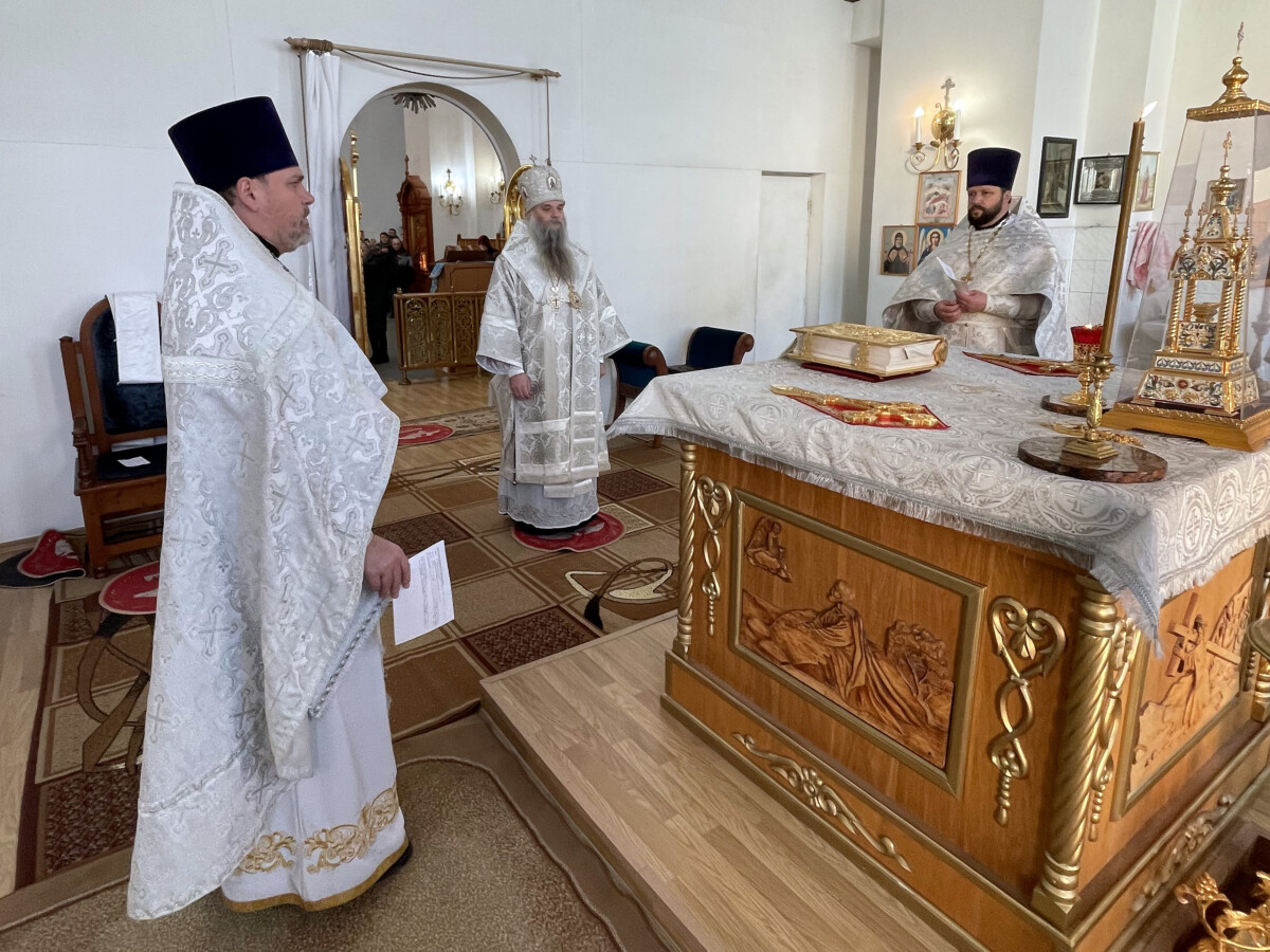 За Божественной Литургией после сугубой ектении Преосвященный Архипастырь вознес особую молитву о Святой Руси. По благословению Святейшего Патриарха Московского и всея Руси Кирилла молитва совершается во всех храмах Русской Православной Церкви.
