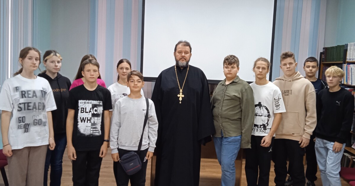 2 октября в Волоконовской центральной районной библиотеке, для учащихся 8 класса МБОУ «Волоконовская СОШ № 1» состоялся духовно – просветительский час «Русь святая, храни веру православную». В мероприятии принял участие благочинный Волоконовского округа, настоятель Успенского храма поселка Волоконовка протоиерей Сергий Вырвыкишка, который рассказал детям о начале церковного индикта или церковного новолетия, о главных двунадесятых праздниках церковного года, главных страницах церковного календаря в сентябре, об истории праздников Рождества Пресвятой Богородицы и Воздвижения Честного и Животворящего Креста Господня.
