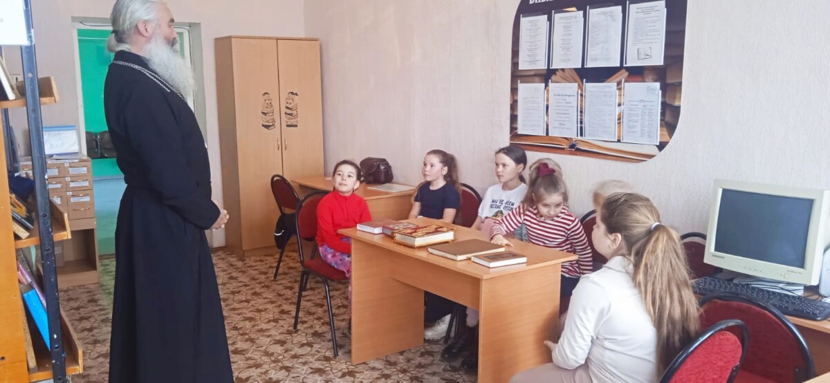 В селе Фощеватово в местной библиотеке состоялась встреча детей с настоятелем сельского храма Рождества Пресвятой Богородицы