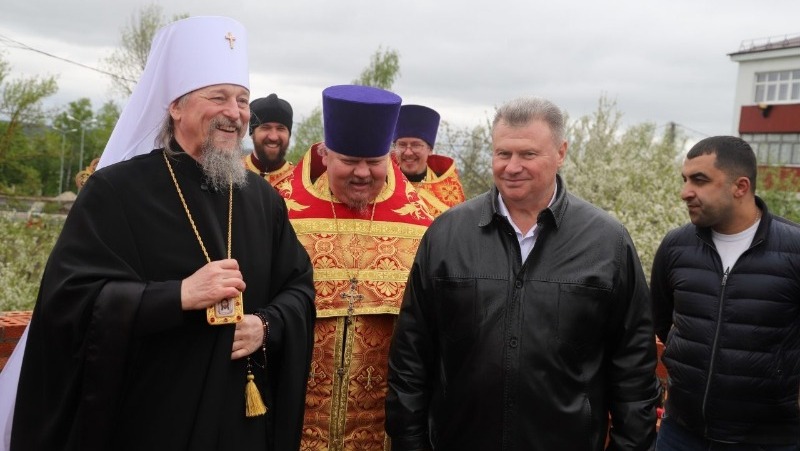Чин освящения закладного камня провёл митрополит Белгородский и Старооскольский Иоанн .Строительство храма началось в марте и по планам к концу лета уже будет завершено.