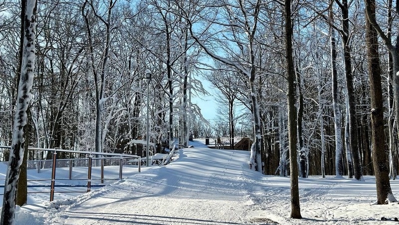 Так как в этом году зима почти бесснежная, на ней запустили для оснежения два снегогенератора. К субботе будет готово 2 км лыжной трассы. Здесь с 10:00 до 21:00 ежедневно будет работать прокат.