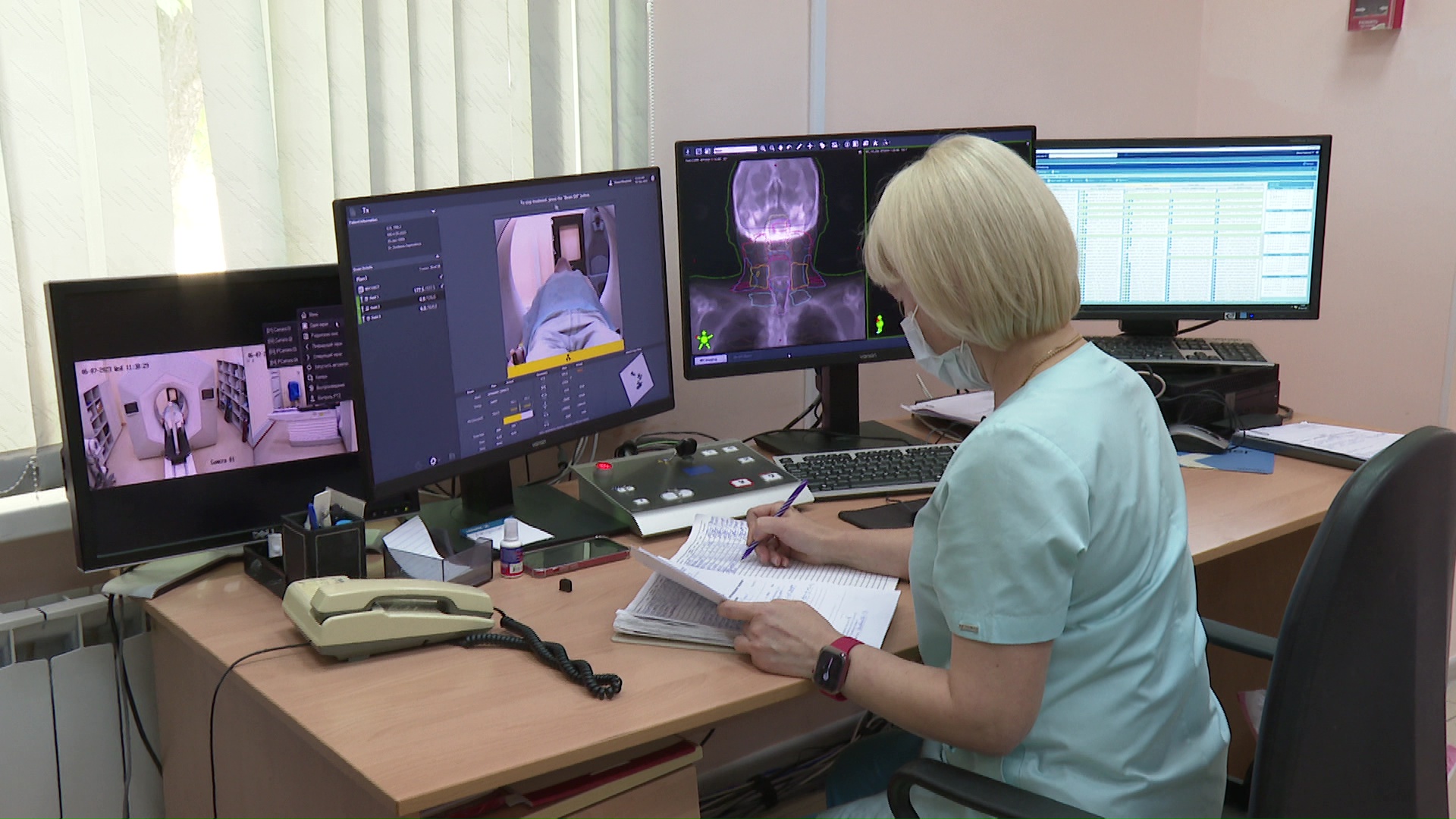 Уже более трёх лет новейшие установки помогают врачам онкодиспансера. Увеличилась и пропускная способность – на современном аппарате можно лечить до 120 человек в день.