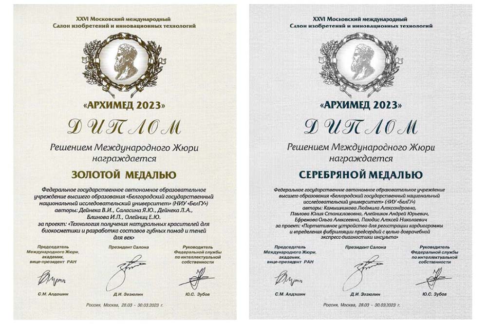 Научные проекты НИУ «БелГУ» – лауреаты международного Салона изобретений и инновационных технологий «Архимед»