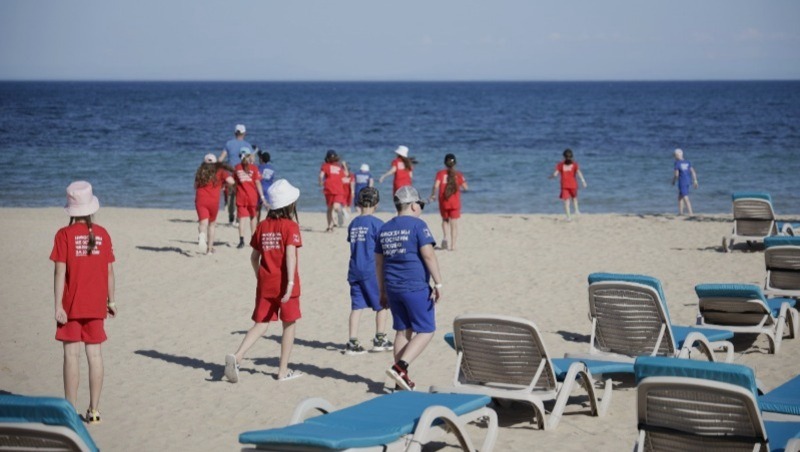 Ребят разделили на 12 отрядов . В течение 21 дня они будут купаться в море, ходить на лечебные процедуры, заниматься спортом и творчеством, а также посещать экскурсии. Детям и сотрудникам санатория выдали брендированную форму в голубых, белых и красных цветах.