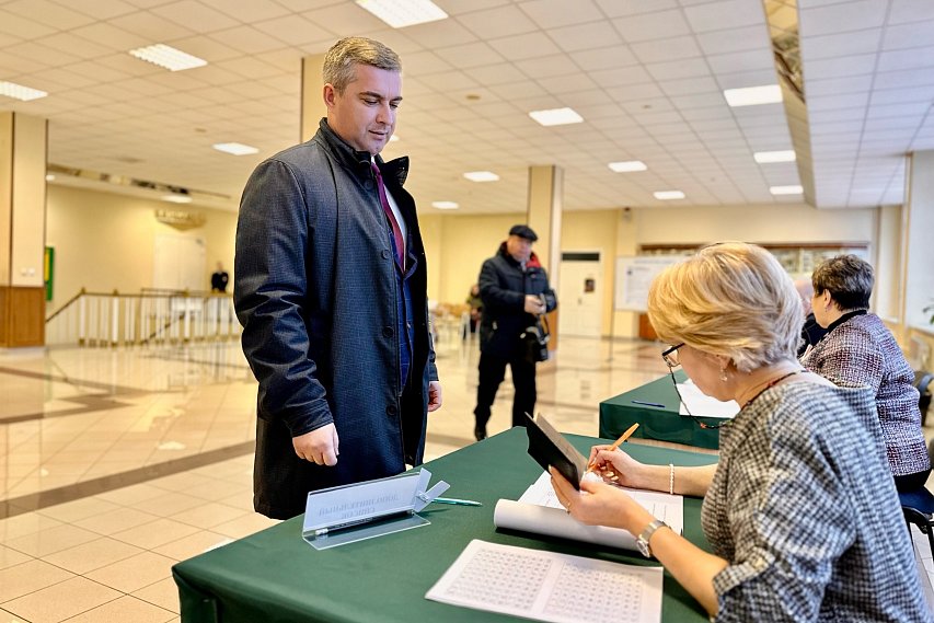 Среди первых проголосовавших — глава администрации Михаил Лобазнов: