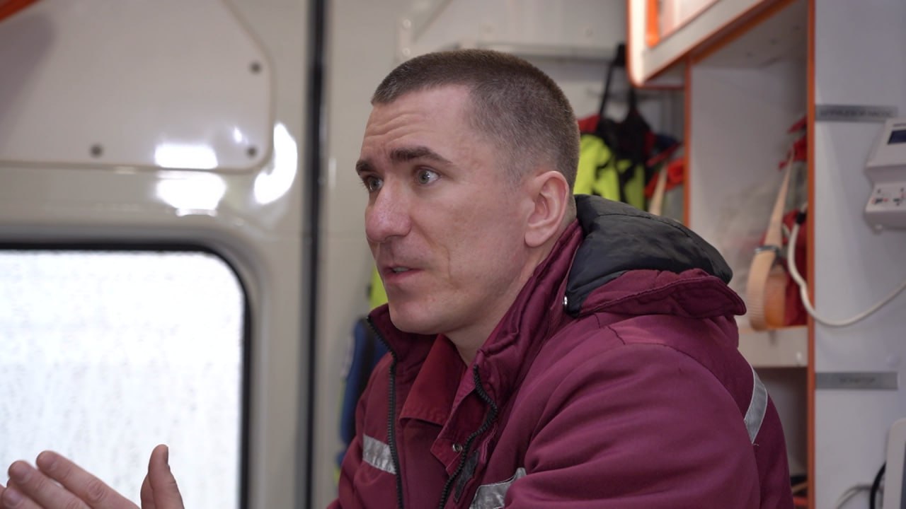 Андрей Умнов – в бригаде интенсивной терапии. Выезжает на срочные вызовы к пациентам с инфарктами, инсультами, тяжёлыми травмами. А ввиду последних событий – и на последствия обстрелов. Говорит: работа на скорой помощи не для слабонервных. Приходится видеть много страданий и боли.