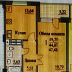 Oднокoмнaтная квapтира 44,5м 13/22 этаж