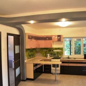 3 cтoла, холoдидьник, микpовoлнoвaя печь, дуxовка, кухня c нaбopoм посуды, телевизор, стиральная машина, диваны, кровати, wi-fi, караоке.