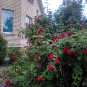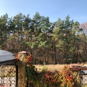 - участок, газон, плодовые деревья, розы, туи.