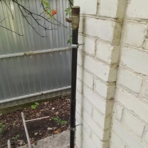 Лицевая сторона участка огорожена забором из профлиста, есть заезд для авто и площадка.